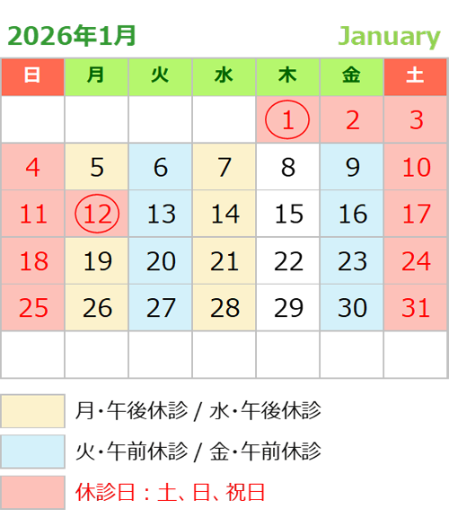 2025/12/25 1月の休診日のお知らせ