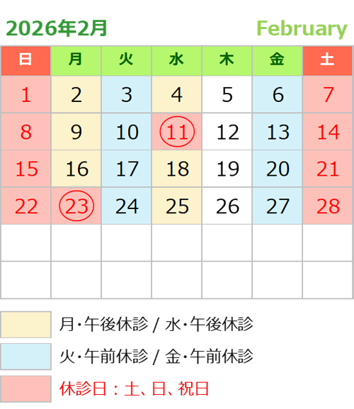 休診日:月曜午後、火曜午前、水曜午後、金曜午前、土、日、祝日