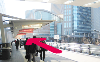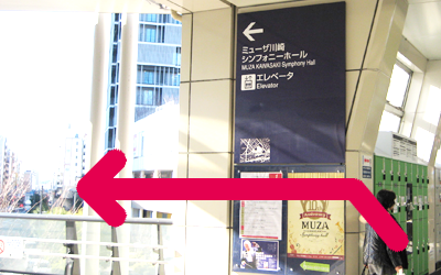 B ミューザ川崎の案内看板を左に曲がります |