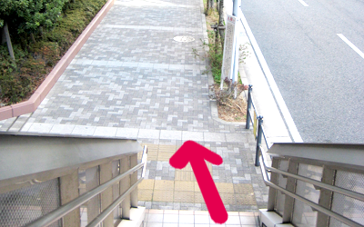 G 前方に茶色のマンションの手前にある階段を右に下ります |