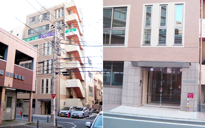 K 左前方のビルにクリニックの看板が見えてきます。 |